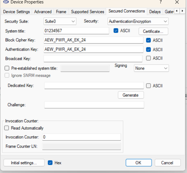 The connection parameters vary between meter models. You need to read the invocation counter from the meter.