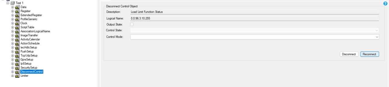 I also tested the Disconnection Control object. Although it appears enabled, the reconnection and disconnection options are not accessible.