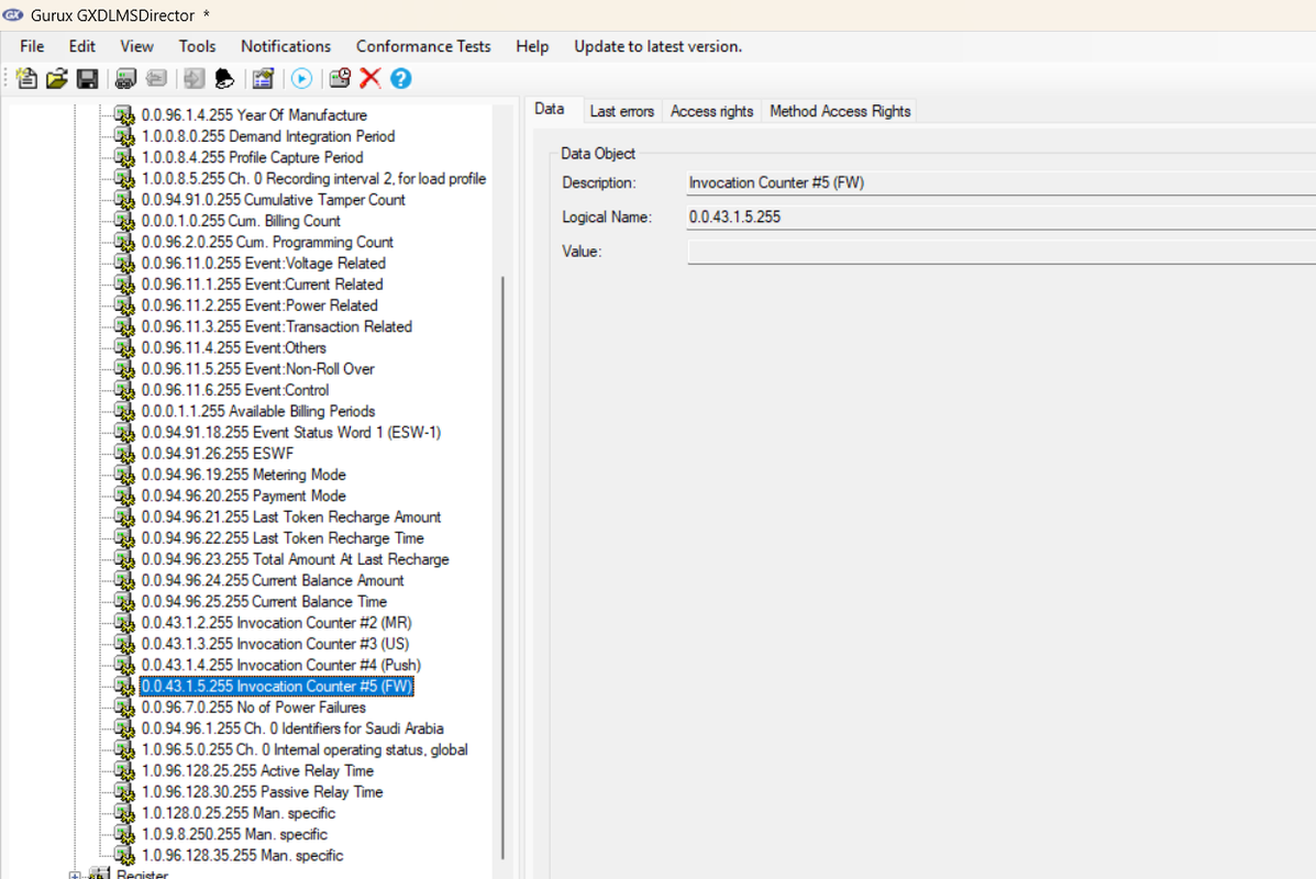 When I read the meter through Gurux DLMS Director and opened the Data section af